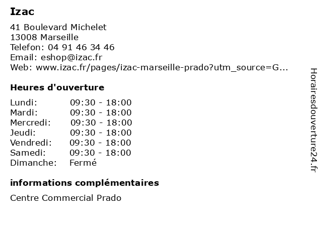 1 IZAC (Distance: 4,76 km) 9 Quai du Lazaret, 13002 Marseille cafe, enfants.chaussures, izac, lingerie, mode hemmes, mode homme, restaurant 2 Izac (Distance: 7,35 km) . Route de la Sabliere, 13011 Marseiile beaute, cafe, chaussures, enfants, izac, mode femmes, mode hommes, restaurant, sport 3 Lacoste (Distance: 0,00 km) 41 Boulevard Michelet, 13008 Marseille boutiques, centre, commercial, lacoste, mode, prado 4 Courir (Distance: 0,00 km) 41 Boulevard Michelet, 13008 Marseille boutique, centre, chaussures, commercial, courir, prado 5 AC Hotel by Marriott Marseille Prado Vélodrome (Distance: 0,05 km) 4 Allee marcel leclerc, 13008 Marseille ac, by, hotel, marriott, marseille, prado, vélodrome 6 Lush (Distance: 0,08 km) 41 Boulevard Michelet, 13008 Marseille beauté, centre, commercial, lush, prado, savons au poids |