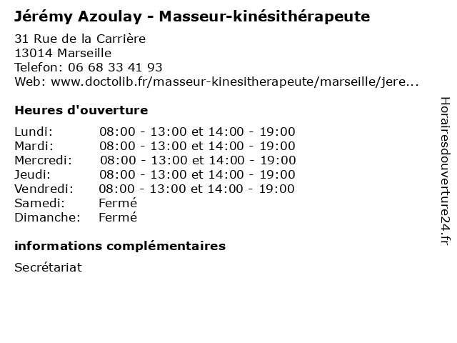 | Lundi | 08:00-13:00 et 14:00-19:00 |