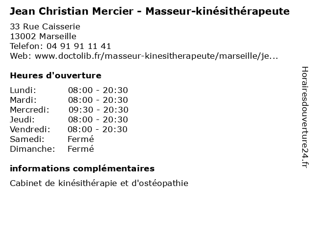 1 Mikael Mercier - Masseur-kinésithérapeute (Distance: 0,00 km) 33 Rue Caisserie, 13002 Marseille docteur, kinésithérapeute, masseur, mercier, mikael, médecin, médecine, secrétariat 2 Maître Isabelle Le Mercier - Avocate (Distance: 1,08 km) 3 rue Roux de Brignoles, 13006 Marseille avocate, avocats, civils, droits, isabelle, juridiques, le, maître, mercier 3 Dr Christian LAPLANE - Dentiste (Distance: 1,87 km) 38 Boulevard Chave, 13005 Marseille cabinet, christian, dentaire, dentiste, docteur, dr, laplane, marseille 4 Bénédicte Adeline-mercier (Distance: 2,28 km) 105 Rue Edmond Rostand, 13008 Marseille adeline, bénédicte, mercier 5 Nicole Mercier - Sage-femme (Distance: 2,49 km) 147 boulevard Baille, 13005 Marseille consultation, docteur, femme, med, medecine, medical, mercier, médecin, nicole, sage, traitement 6 Dr Marie-France Brunel-Mercier - Anesthésiste (Distance: 2,49 km) 147 boulevard Baille, 13005 Marseille anesthésiste, brunel, consultation, docteur, dr, france, marie, med, medecine, medical, mercier, médecin, traitement |