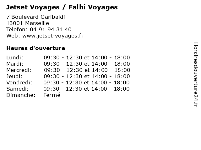| Mardi | 09:30-12:30 et 14:00-18:00 |