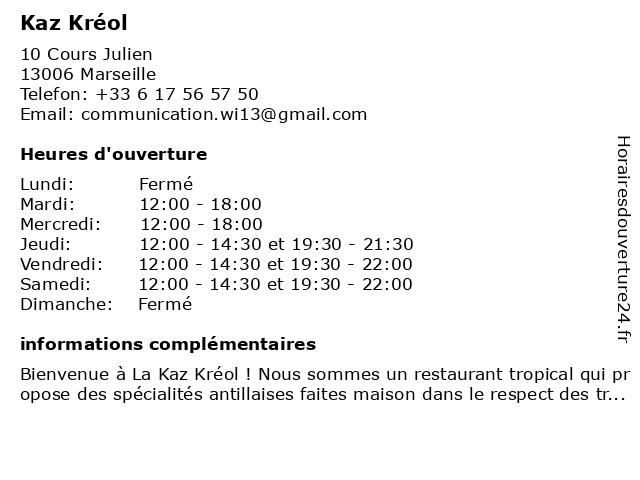 1 Kaz'Kreyol (Distance: 45,36 km) 98 place parmentier, 84120 Pertuis baptiste, elisabeth, kaz, kaz'kreyol, kreyol, restaurants |