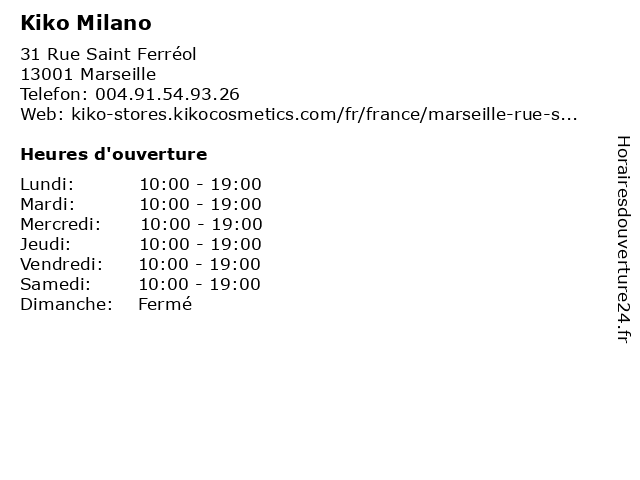 1 Kiko Milano (Distance: 1,54 km) - Place De La Joliette, 13016 Marseille accessoires, beauté, boutique, kiko, maquillage, milano, parfumerie, parfums 2 Kiko Milano (Distance: 1,71 km) 9 Quai du Lazaret, 13002 Marseille beauté, cosmétique, kiko, maquillage, milano, soins 3 Kiko Milano (Distance: 5,14 km) 112 Avenue de Hambourg, 13008 Marseille beauté, cosmétique, kiko, maquillage, milano, soins 4 Kiko Milano (Distance: 7,92 km) 11 Avenue de Saint Antoine, 13464 Marseille beauté, cosmétique, kiko, maquillage, milano, soins 5 Kiko Milano (Distance: 8,19 km) . Route de la Sablière, 13011 Marseille beauté, cosmétique, kiko, maquillage, milano, soins 6 Kiko Milano (Distance: 13,42 km) . Avenue de Plan de Campagne, 13170 Les Pennes Mirabeau beauté, cosmétique, kiko, maquillage, milano, soins |