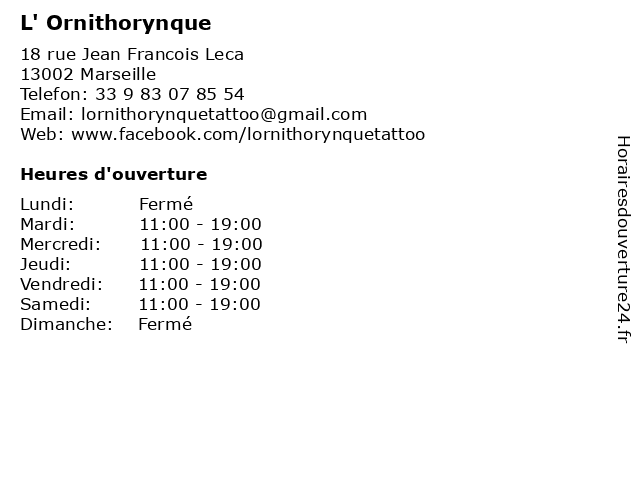 | Mercredi | 11:00-19:00 |