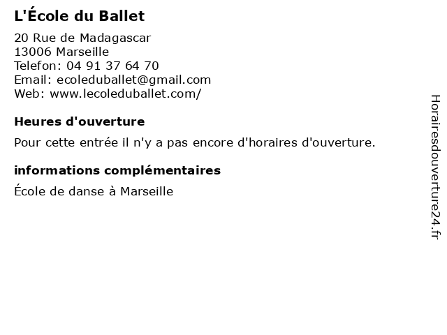 1 Life Club / Activités - Danse orientale (Distance: 0,20 km) 40 rue du Dr escat, 13006 Marseille activités, club, danse, exercise, fitness, health, life, orientale, outdoor, physical activities, sports 2 Orchestra Studio Marseille (Distance: 0,37 km) 17 Rue Pierre Dupré, 13008 Marseille académie, cours, danse, marseille, orchestra, studio, école 3 Vergari Ballett Pilates (Distance: 0,57 km) 5 Rue des Vignerons, 13006 Marseille académie, ballett, compagnie, cours, danse, pilates, vergari, école 4 System Dance Studio (Distance: 0,57 km) 14 Rue Pointe À Pitre, 13006 Marseille académie, cours, dance, danse, studio, system, école 5 Les Studios du Cours (Distance: 0,68 km) 76 Rue du Rouet, 13008 Marseille académie, cours, course, danse, du, les, studios, école 6 |