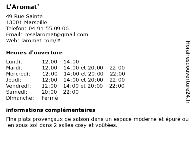 | Dimanche | Fermé |