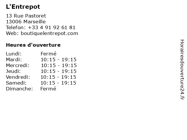 | Mercredi | 10:15-19:15 |