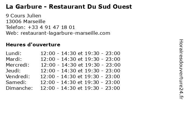| Dimanche | 12:00-14:30 et 19:30-23:00 |