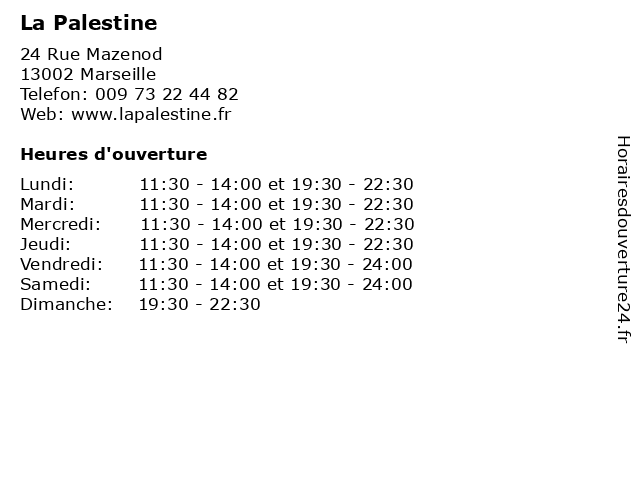 | Samedi | 11:30-14:00 et 19:30-24:00 |