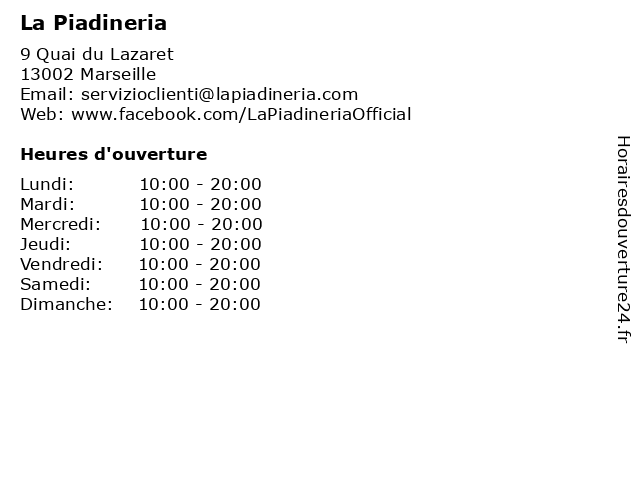 | Mercredi | 10:00-20:00 |