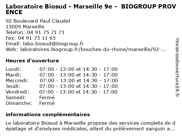 Termes de recherche pour Laboratoire Biosud - Marseille 9e - BIOGROUP PROVENCE:provence, marseille, laboratoire, 9e, biosud, biogroup, dépistages, laboratoire de diagnostic |