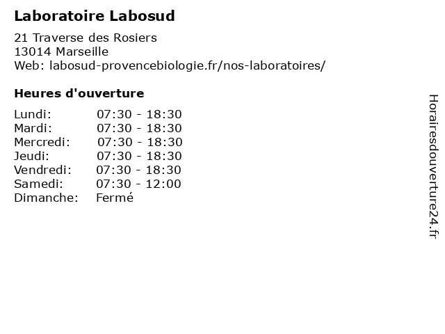 1 Laboratoire Labosud (Distance: 1,17 km) 11 Place Bernard Cadenat, 13003 Marseille bureau, consultation, dr, laboratoire, labosud, maladie, med, médecin, médecine, pratique, thérapie, traitement 2 Laboratoire Labosud (Distance: 2,92 km) 12 Square Belsunce, 13001 Marseille bureau, consultation, dr, laboratoire, labosud, maladie, med, médecin, médecine, pratique, thérapie, traitement 3 Laboratoire Labosud (Distance: 3,12 km) 98 Boulevard Chave, 13005 Marseille bureau, consultation, dr, laboratoire, labosud, maladie, med, médecin, médecine, pratique, thérapie, traitement 4 Laboratoire Labosud (Distance: 3,21 km) 5 Rue Rouvière, 13001 Marseille bureau, consultation, dr, laboratoire, labosud, maladie, med, médecin, médecine, pratique, thérapie, traitement 5 Laboratoire Labosud (Distance: 3,48 km) 52 Rue Francis Davso, 13001 Marseille bureau, consultation, dr, laboratoire, labosud, maladie, med, médecin, médecine, pratique, thérapie, traitement 6 Laboratoire Labosud (Distance: 3,85 km) 16 Rue Dragon, 13006 Marseille bureau, consultation, dr, laboratoire, labosud, maladie, med, médecin, médecine, pratique, thérapie, traitement  |