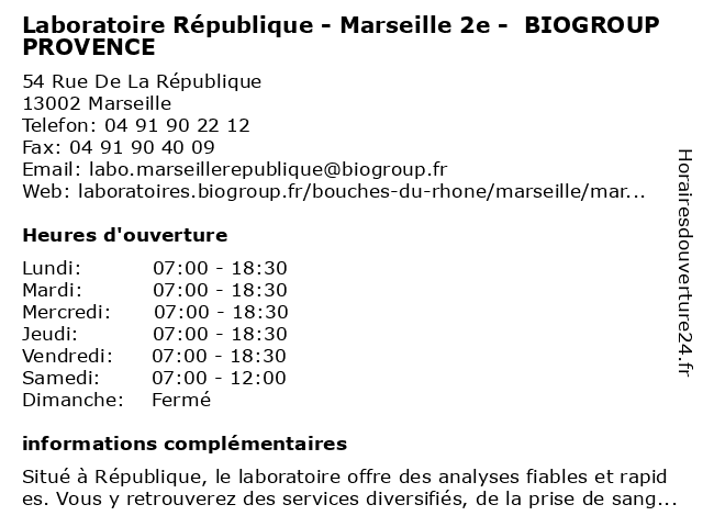 Termes de recherche pour Laboratoire République - Marseille 2e - BIOGROUP PROVENCE:provence, marseille, laboratoire, republique, 2e, biogroup, dépistages, laboratoire de diagnostic |