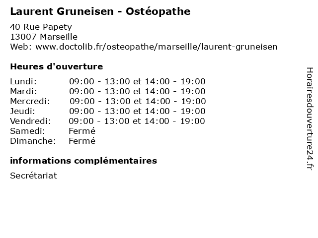 | Lundi | 09:00-13:00 et 14:00-19:00 |