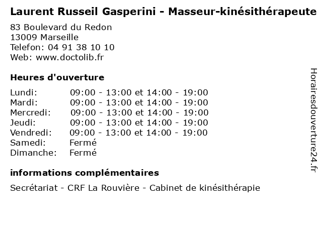 | Lundi | 09:00-13:00 et 14:00-19:00 |