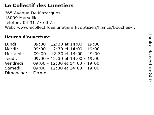 | Lundi | 09:00-12:30 et 14:00-19:00 |
