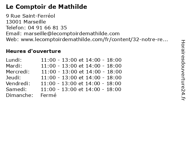 | Mardi | 11:00-13:00 et 14:00-18:00 |