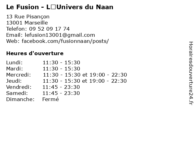| Jeudi | 11:30-15:30 et 19:00-22:30 |