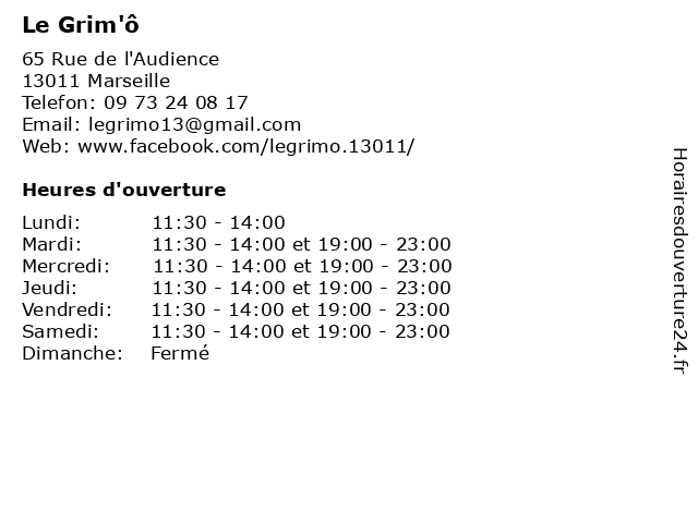 Mercredi | 11:30-14:00 et 19:00-23:00 |