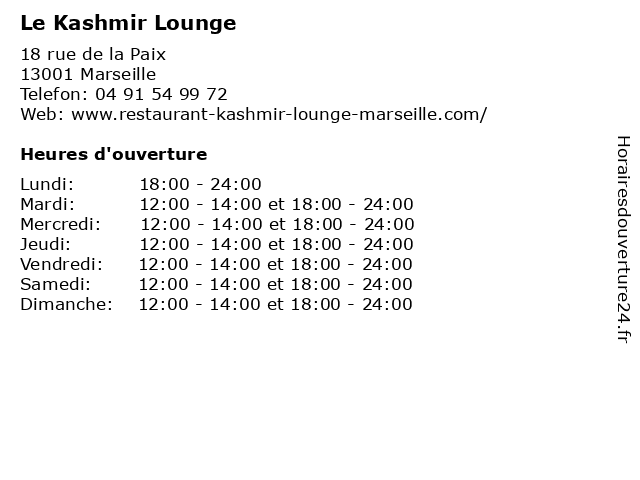 | Mardi | 12:00-14:00 et 18:00-24:00 |