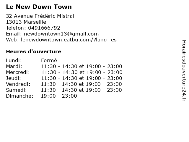 | Mercredi | 11:30-14:30 et 19:00-23:00 |