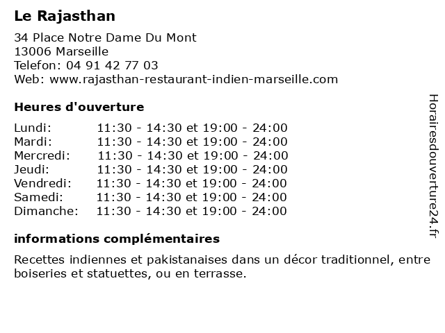 | Jeudi | 11:30-14:30 et 19:00-24:00 |