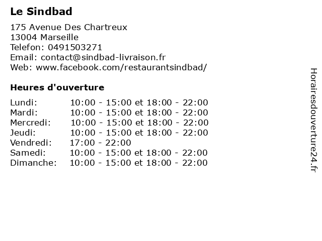 | Dimanche | 10:00-15:00 et 18:00-22:00 |