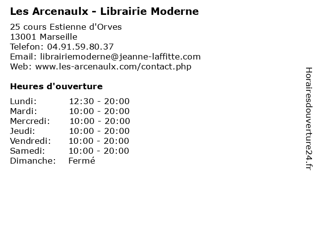 | Lundi | 12:30-20:00 |