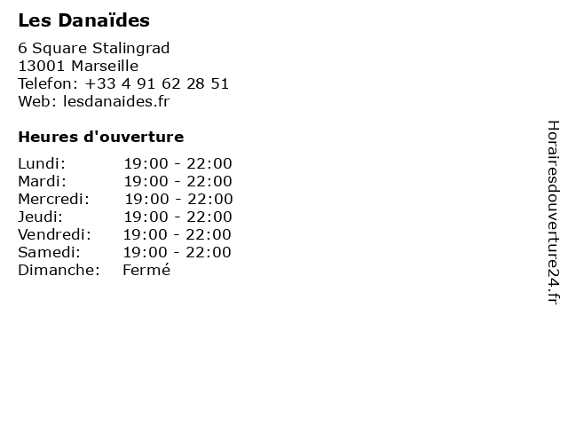 | Samedi | 19:00-22:00 |
