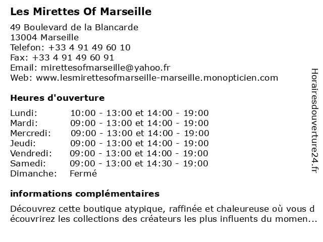 | Lundi | 10:00-13:00 et 14:00-19:00 |