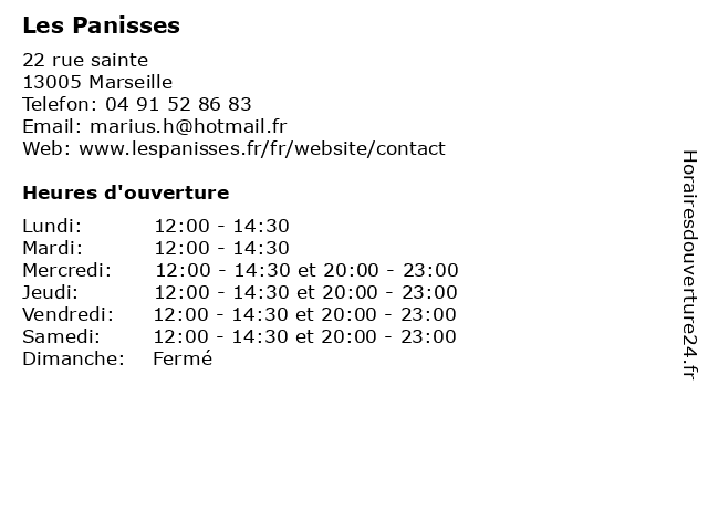 | Jeudi | 12:00-14:30 et 20:00-23:00 |