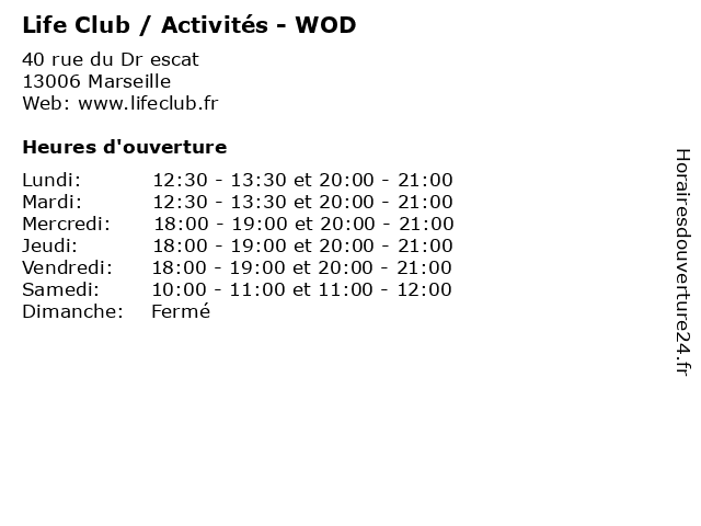 | Mardi | 12:30-13:30 et 20:00-21:00 |