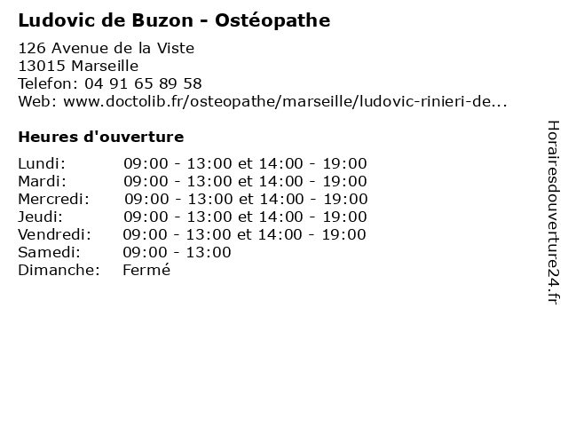 | Lundi | 09:00-13:00 et 14:00-19:00 |