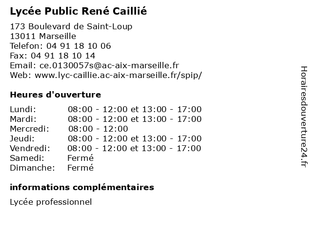 | Lundi | 08:00-12:00 et 13:00-17:00 |