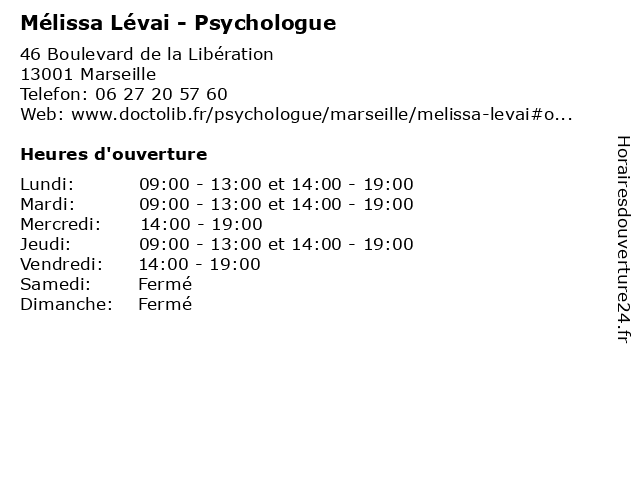 | Lundi | 09:00-13:00 et 14:00-19:00 |