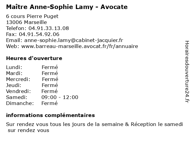 1 Anne -sophie grardel avocat (Distance: 0,06 km) 31 rue Montgrand, 13006 Marseille anne, avocat, conseil, droit, grardel, sophie 2 Maître Anne Leonard - Avocate (Distance: 0,06 km) 70 rue Paradis, 13006 Marseille anne, avocate, avocats, civils, droits, juridiques, leonard, maître 3 Maître Marie-Anne Donsimoni - Avocate (Distance: 0,07 km) 16 cours Pierre Puget, 13006 Marseille anne, avocate, avocats, civils, donsimoni, droits, juridiques, marie, maître 4 Maître Arame-Sophie Loum - Avocate (Distance: 0,09 km) 42a rue Montgrand, 13006 Marseille arame, avocate, avocats, civils, droits, juridiques, loum, maître, sophie 5 Maître Marie-Anne Milan - Avocate (Distance: 0,10 km) 37 rue Montgrand, 13006 Marseille anne, avocate, avocats, civils, droits, juridiques, marie, maître, milan 6 Maître Anne-Sophie Marion - Avocate (Distance: 0,11 km) 39 rue Montgrand, 13006 Marseille anne, avocate, avocats, civils, droits, juridiques, marion, maître, sophie |