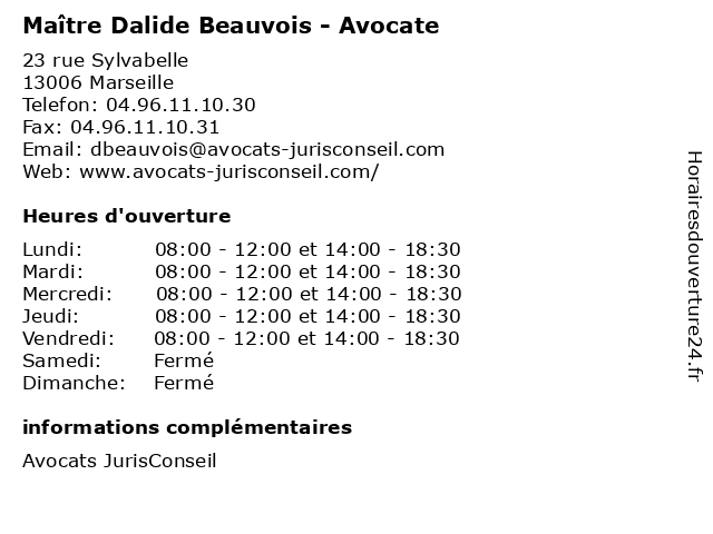 | Lundi | 08:00-12:00 et 14:00-18:30 |