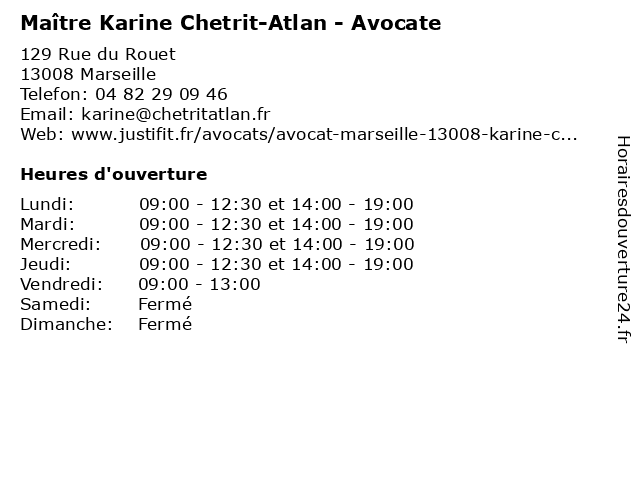 | Lundi | 09:00-12:30 et 14:00-19:00 |