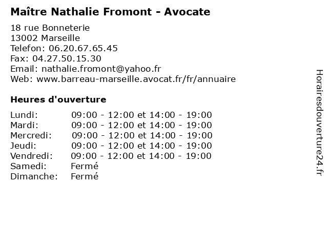 1 Dr Nathalie Magnan - Chirurgien-dentiste (Distance: 0,30 km) 20-26 Rue Caisserie, 13002 Marseille chirurgien, consultation, dentiste, docteur, dr, magnan, med, médecin, médecine, nathalie, secrétariat, traitement 2 Limonta Nathalie Pascale (Distance: 0,46 km) Saens 28 Rue Saint, 13001 Marseille boucheries, limonta, nathalie, pascale, poissonneries 3 Maître Nathalie Bonmarchand - Avocate (Distance: 0,49 km) 19 rue la Paix Marcel Paul, 13001 Marseille avocate, avocats, bonmarchand, civils, droits, juridiques, maître, nathalie 4 Chery Albrespy Nathalie (Distance: 0,66 km) Etage 3Eme, 13001 Marseille albrespy, bailleurs, biens, chery, immobiliers, nathalie, nra 5 Maître Nathalie Fouque-Augier - Avocate (Distance: 0,76 km) 16c Boulevard Notre Dame, 13006 Marseille augier, avocate, avocats, civils, droits, fouque, juridiques, maître, nathalie 6 Maître Nathalie Lopez - Avocate (Distance: 0,83 km) 79 cours Pierre Puget, 13006 Marseille avocate, avocats, civils, droits, juridiques, lopez, maître, nathalie |