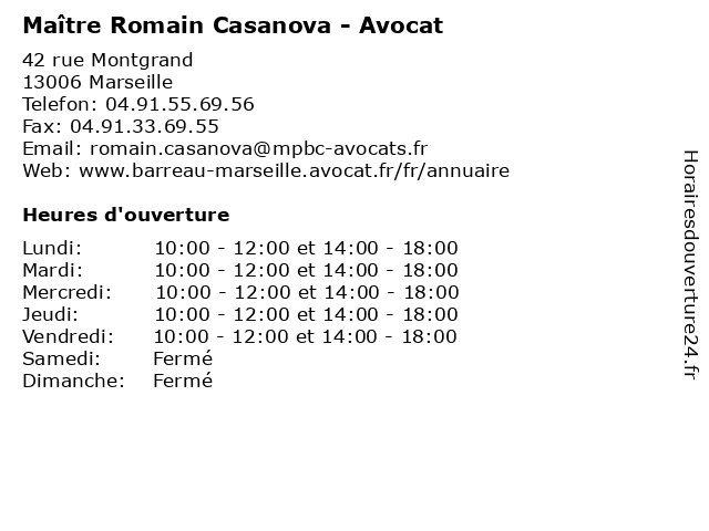 1 Maître Romain Marechal - Avocat (Distance: 0,10 km) 26 rue Montgrand, 13006 Marseille avocat, avocats, civils, droits, juridiques, marechal, maître, romain 2 Maître Romain Allemand - Avocat (Distance: 0,12 km) 11 rue Montgrand, 13006 Marseille allemand, avocat, avocate, avocats, civils, droits, juridiques, maître, romain 3 Maître Romain Allongue - Avocat (Distance: 0,12 km) 60 Rue Grignan, 13006 Marseille allongue, avocat, avocate, avocats, civils, droits, juridiques, maître, romain 4 Maître Romain Korchia - Avocat (Distance: 0,18 km) 16 rue Breteuil, 13001 Marseille avocat, avocate, avocats, civils, droits, juridiques, korchia, maître, romain 5 Maître Romain Neiller - Avocat (Distance: 0,20 km) 33 rue Francis Davso, 13001 Marseille avocat, droit, juridictionnelle, maître, neiller, négociation, romain 6 Romain Caro - Psychologue (Distance: 0,31 km) 5 Place de Rome, 13006 Marseille caro, psy, psychiatre, psychologue, romain, sante, soins |