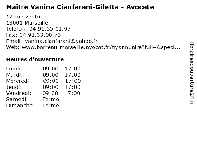 1 Maître Fabrice Giletta - Avocat (Distance: 0,00 km) 17 rue Venture, 13001 Marseille avocat, avocate, avocats, civils, droits, fabrice, giletta, juridiques, maître 2 Maître Victoria André-Cianfarani - Avocate (Distance: 0,17 km) 2 place Félix Baret, 13006 Marseille andre, andré, avocate, avocats, cianfarani, civils, droits, juridiques, maître, victoria 3 Maître Vanina Simoni - Avocate (Distance: 0,38 km) 3 rue d'Arcole, 13006 Marseille avocate, avocats, civils, droits, juridiques, maître, simoni, vanina 4 AXA Prévoyance & Patrimoine Vanina Defranchi (Distance: 4,61 km) 42 B BOULEVARD DU GENERAL NOLLET, 13012 Marseille assurance décès, assurance entreprise, assurance epargne, assurance invalidité, assurance patrimoine, assurance profession libérale, assurance protection juridique, assurance prévoyance, assurance santé, assurance vie, axa, defranchi, patrimoine, prévoyance, vanina 5 Dr Vanina Chareyre - Gynécologue obstétricien (Distance: 15,08 km) 179 Avenue des Sœurs Gastine, 13400 Aubagne chareyre, consultation, docteur, dr, gynécologue, med, médecin, médecine, obstétricien, traitement, vanina 6 Vanina Jehan Marini - Diététicienne (Distance: 17,54 km) 37 Chemin du Cimetière, 13119 Saint-Savournin alimentation, dieteticien, diététicienne, jehan, marini, nourriture, sante, vanina |