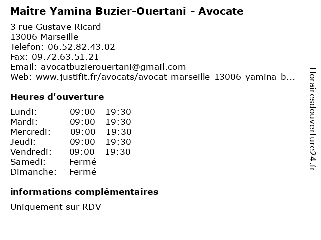 1 Bekhtiar Amendola Yamina Roberte (Distance: 3,29 km) 228 Avenue Roger Salengro, 13015 Marseille amendola, bekhtiar, restaurants, roberte, yamina 3 Dr Yamina Benamara Tlemsani - Chirurgien-dentiste - secrétariat (Distance: 6,02 km) 55 Rue Gabriel Audisio, 13014 Marseille benamara, chirurgien, chirurgien-dentiste, dentiste, dr, médecins, médicaments, santé, secrétariat, spécialiste, tlemsani, yamina 4 Pain Chocolat (Distance: 16,19 km) Les Vaux, 13400 Aubagne amedah, chocolat, pain, restaurants, yamina 5 Chez Linda Mere Et Fils (Distance: 20,07 km) Chez Linda Mere Et Fils Batiment a 72 Logis Notre Dame, 13120 Gardanne chez, fils, kaced, linda, mere, restaurants, yamina 6 Maître Isabelle Thibaud - Avocate (Distance: 0,01 km) 5 rue Gustave Ricard, 13006 Marseille avocate, avocats, civils, droits, isabelle, juridiques, maître, thibaud |