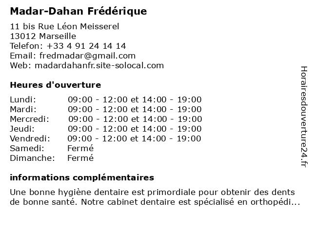 | Lundi | 09:00-12:00 et 14:00-19:00 |