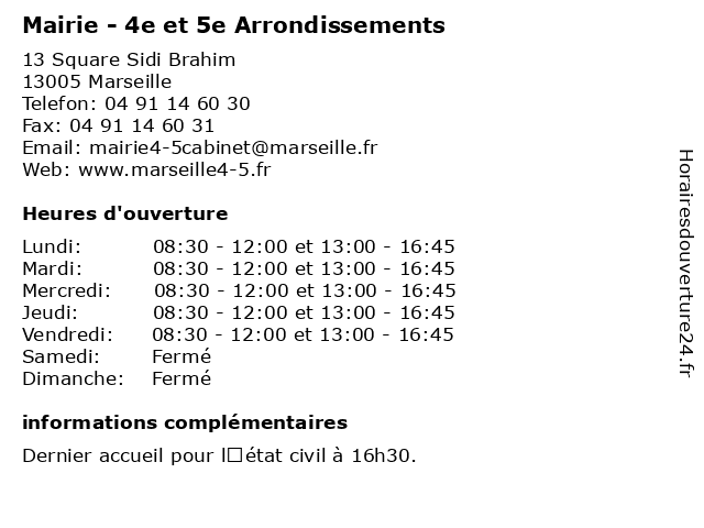 | Mardi | 08:30-12:00 et 13:00-16:45 |
