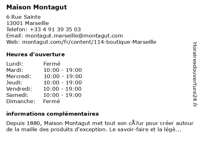 | Lundi | Fermé |