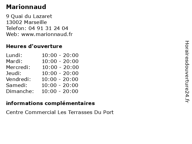 1 Marionnaud (Distance: 0,06 km) Marionnaud , 13002 Marseille divers, détail, lafayette, magasins, marionnaud, nra 2 Marionnaud (Distance: 1,37 km) 17 Cours Belsunce, 13231 Marseille alimentation, beauté & santé, culture & loisirs, enfants, high-tech, maison & déco, marionnaud, mode, restaurants 3 Marionnaud (Distance: 1,60 km) , C. Cial Bourse, 13001 Marseille bath accessories, care, drugstore, hair, haut, make up, man, marionnaud, perfume 4 Marionnaud (Distance: 6,67 km) 15 Avenue de Saint Antoine, 13015 Marseille boutique, cosmetiques, marionnaud, parfumeries 5 Marionnaud (Distance: 9,46 km) 11 Route de la Sabliere La Valentine Saint Menet, 13011 Marseille bath accessories, care, drugstore, hair, haut, make up, man, marionnaud, perfume 6 Marionnaud (Distance: 11,89 km) 113 Route Nationale, 13127 Vitrolles accessories, cafe, costume, homme, marionnaud, mode, pantalons, pulls, restaurant, service |