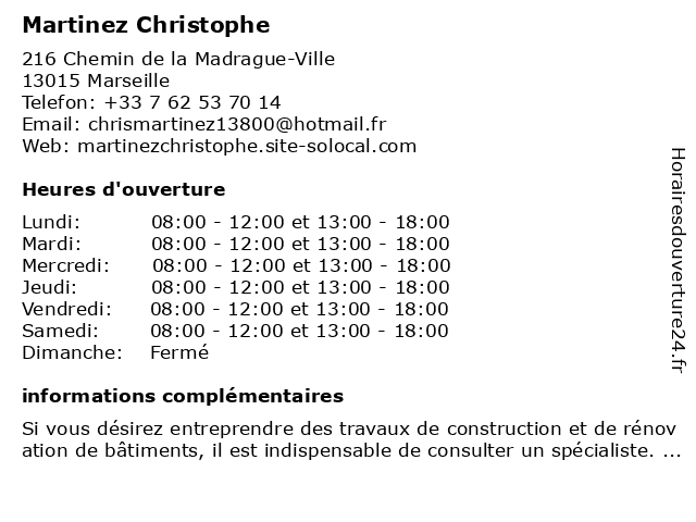| Mardi | 08:00-12:00 et 13:00-18:00 |