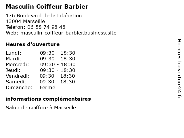 1 L'Authentique Barbier (Distance: 0,22 km) 1 Rue Fondere, 13004 Marseille barbier, beauté, coiffure, coiffures, coloristes, l'authentique 2 Coiffeur Les 2 Styles (Distance: 1,03 km) 73 Boulevard National, 13003 Marseille beauté, coiffeur, les, manucure, salon de coiffure, soins, styles, visage 3 Le Coiffeur Homme (Distance: 1,47 km) 94 Rue d'Aubagne, 13001 Marseille beauté, coiffeur, coiffure, coiffures, coloristes, homme, le 4 Sculpt - Coiffeur & Coloriste (Distance: 1,74 km) 41 Rue Vacon, 13001 Marseille beauté, coiffeur, coiffure, coiffures, coloriste, coloristes, sculpt 5 L'Artisan Coiffeur By M (Distance: 1,82 km) 1 Rue Pytheas, 13001 Marseille artisan, beauté, by, coiffeur, coiffure, coiffures, coloristes, l'artisan 6 Le Barbier de Marseille (Distance: 2,06 km) 63 Rue de la République, 13002 Marseille barbier, beauté, coiffure, coiffures, coloristes, de, le, marseille |