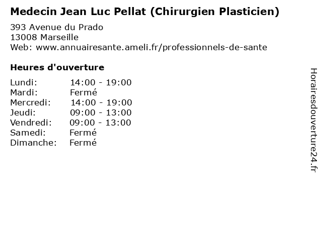 1 Dr Jean-Luc Pellat - Chirurgien de la main (Distance: 0,01 km) 393 Avenue du Prado, 13008 Marseille chirurgien, consultation, de, docteur, dr, jean, la, luc, main, med, médecin, médecine, pellat, secrétariat, traitement 2 Medecin Guy Vigreux (hépatologue) (Distance: 0,10 km) 394B Avenue du Prado, 13008 Marseille docteur, guy, hépatologue, medecin, sante, services, vigreux 3 Dr. Lavie Antoine - Chirurgien esthétique et plasticien (Distance: 0,19 km) 6 Rue François Rocca, 13008 Marseille antoine, chirurgien, docteur, dr., esthétique, et, lavie, medecins, plasticien, sante 4 Medecin Pierre Biberian (Acupuncteur) (Distance: 0,23 km) 21 Avenue de Mazargues, 13008 Marseille acupuncteur, biberian, docteur, medecin, pierre, sante, services 5 Medecin Philippe Samson (Chirurgien Plasticien) (Distance: 0,47 km) 88 Rue du Commandant Rolland, 13008 Marseille chirurgien, docteur, medecin, philippe, plasticien, samson, sante, services 6 Medecin Julien Serri (Chirurgien Plasticien) (Distance: 0,62 km) 429 Rue Paradis, 13008 Marseille chirurgien, docteur, julien, medecin, plasticien, sante, serri, services |