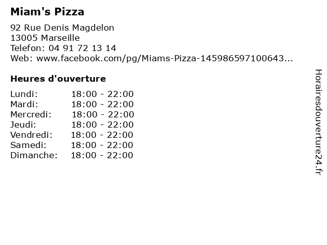 | Samedi | 18:00-22:00 |