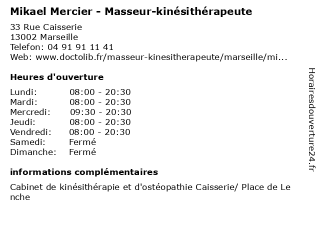 1 Jean Christian Mercier - Masseur-kinésithérapeute (Distance: 0,00 km) 33 Rue Caisserie, 13002 Marseille christian, jean, kinésithérapeute, masseur, mercier, médecin, médecine, médical, pharmaceutique, secrétariat, traitement 2 Maître Isabelle Le Mercier - Avocate (Distance: 1,08 km) 3 rue Roux de Brignoles, 13006 Marseille avocate, avocats, civils, droits, isabelle, juridiques, le, maître, mercier 3 Bénédicte Adeline-mercier (Distance: 2,28 km) 105 Rue Edmond Rostand, 13008 Marseille adeline, bénédicte, mercier 4 Nicole Mercier - Sage-femme (Distance: 2,49 km) 147 boulevard Baille, 13005 Marseille consultation, docteur, femme, med, medecine, medical, mercier, médecin, nicole, sage, traitement 5 Dr Marie-France Brunel-Mercier - Anesthésiste (Distance: 2,49 km) 147 boulevard Baille, 13005 Marseille anesthésiste, brunel, consultation, docteur, dr, france, marie, med, medecine, medical, mercier, médecin, traitement 6 Dr Mikael Ebbo - Spécialiste en médecine interne (Distance: 2,96 km) 278 Rue Saint-Pierre, 13005 Marseille consultation, docteur, dr, ebbo, en, interne, med, mikael, médecin, médecine, spécialiste, traitement |